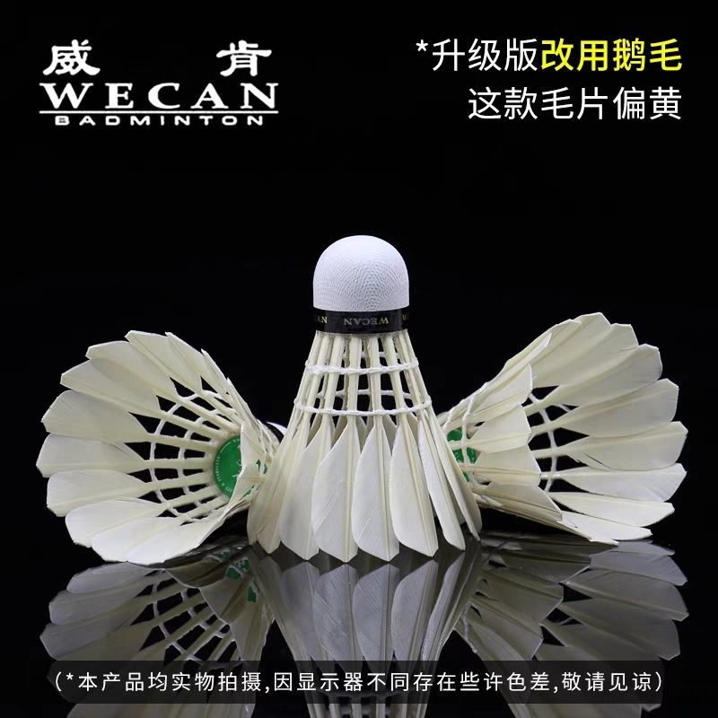 綠威肯:使用反洗鵝單邊毛片,進(jìn)口碎木二拼球頭,球感A++,耐打A++,飛行AB,速度74至77